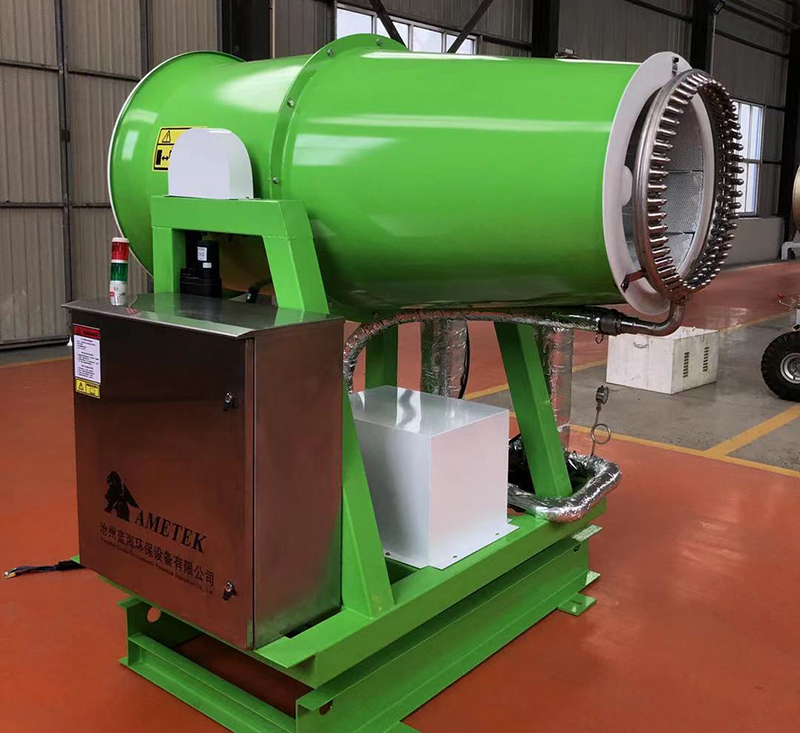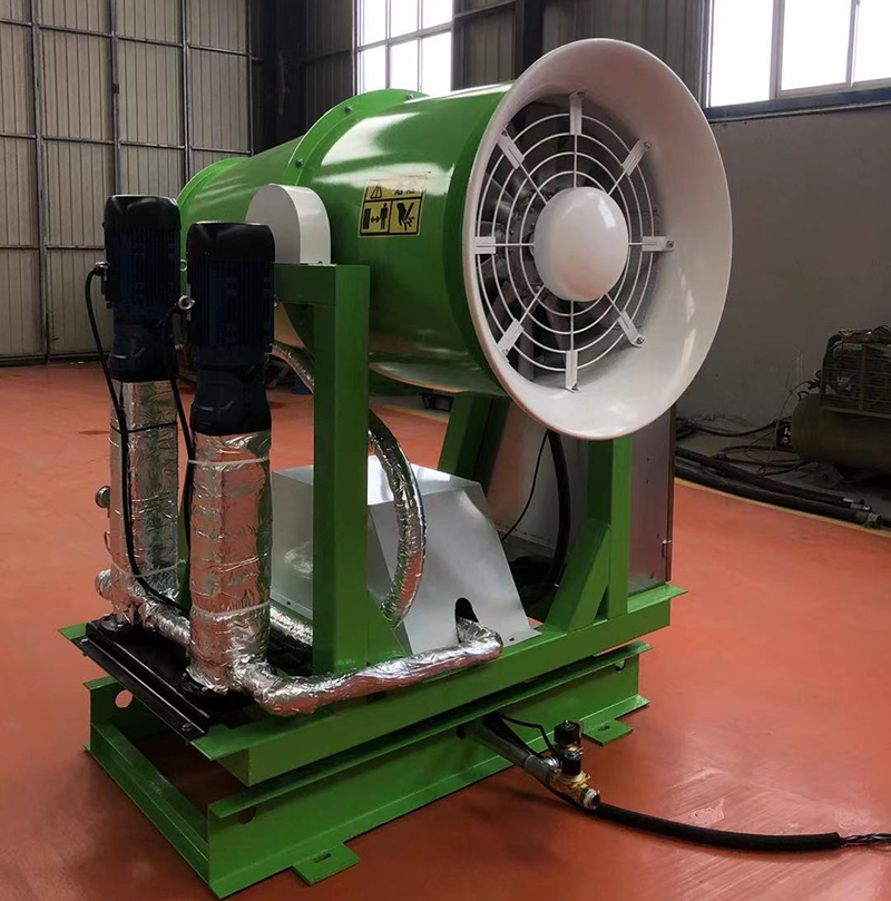 此款設(shè)備的噴霧距離是60米,配備的南方泵業(yè)的雙泵,將設(shè)備連續(xù)工作時間延長至24小時壓力能達(dá)到4Mpa,噴射出來的霧粒30微米。