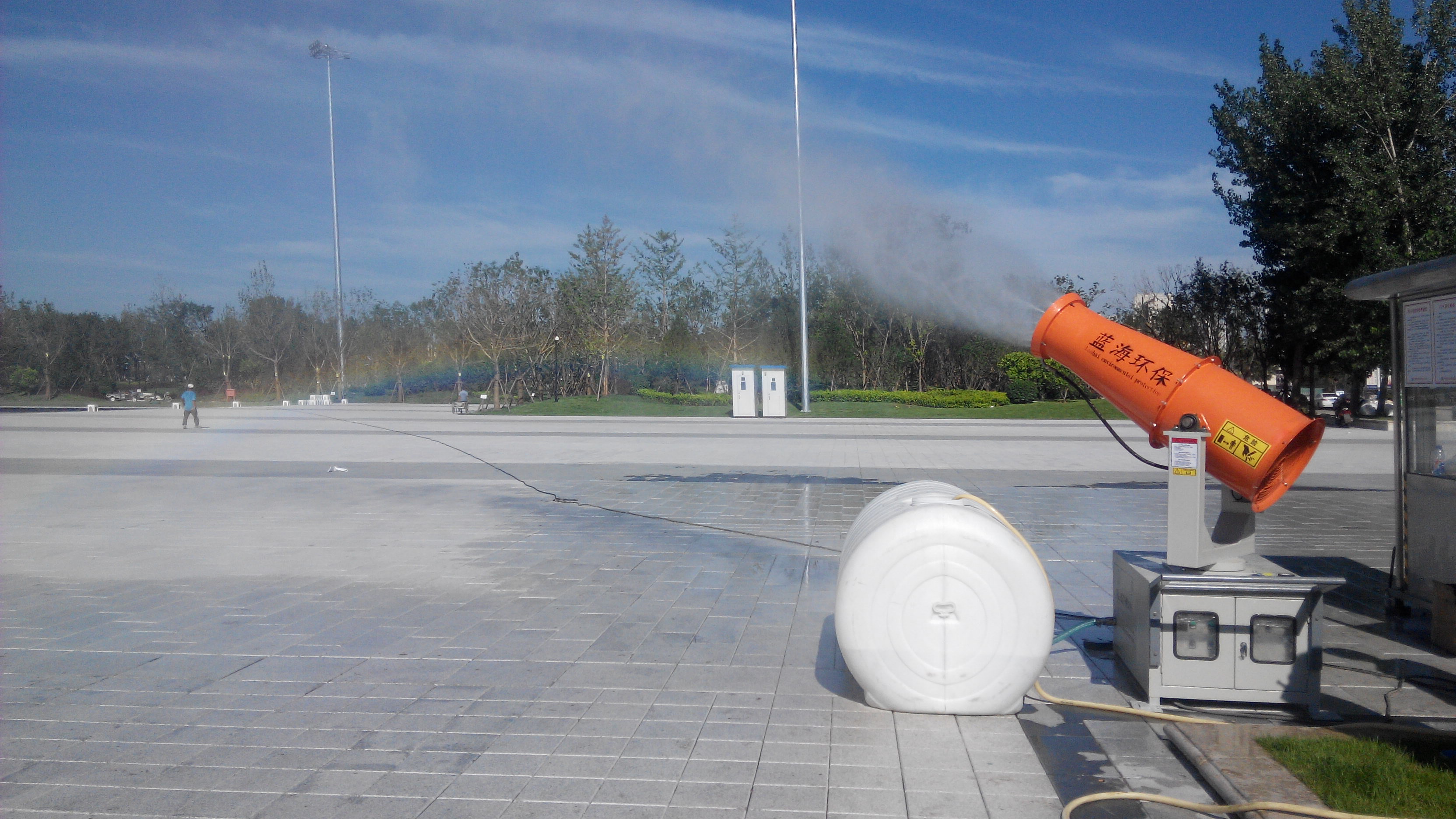 廊坊環保局定制除塵噴霧機用于民族文化宮廣場降溫。