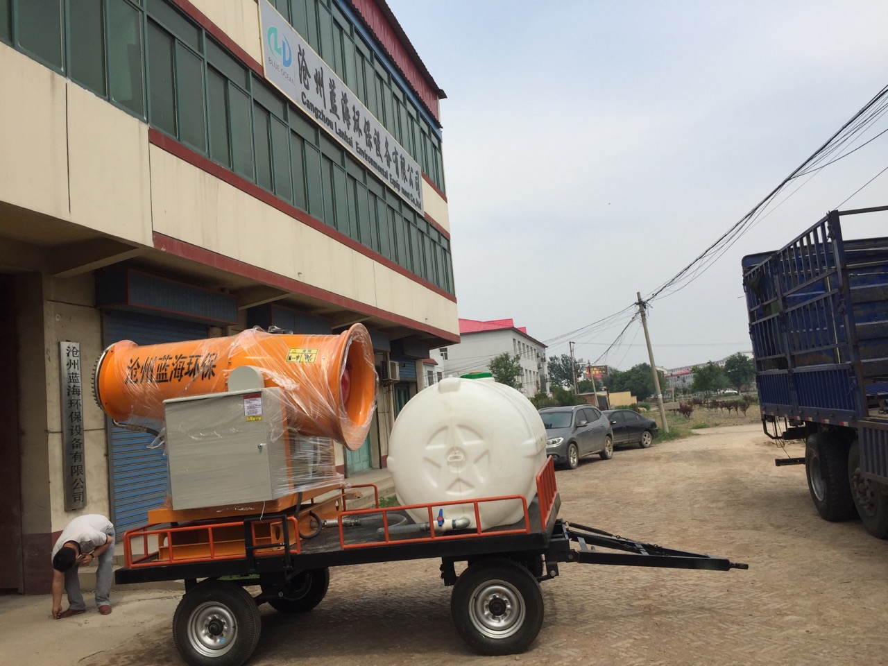 中國水利水電工程局再次采購我公司除塵噴霧機,本次采購的除塵噴霧機為LHW-60拖車式除塵噴霧機該形式除塵噴霧機在工地方面運用比較廣泛,該設備配備3t承重的拖車配備2t水桶,便于移動作業,且60米的水平射程也可滿足目前的各大工地,我公司的60米除塵噴霧機使用48個不銹鋼噴嘴霧化度極高,采用22kw風機確保噴射距離達到60m。