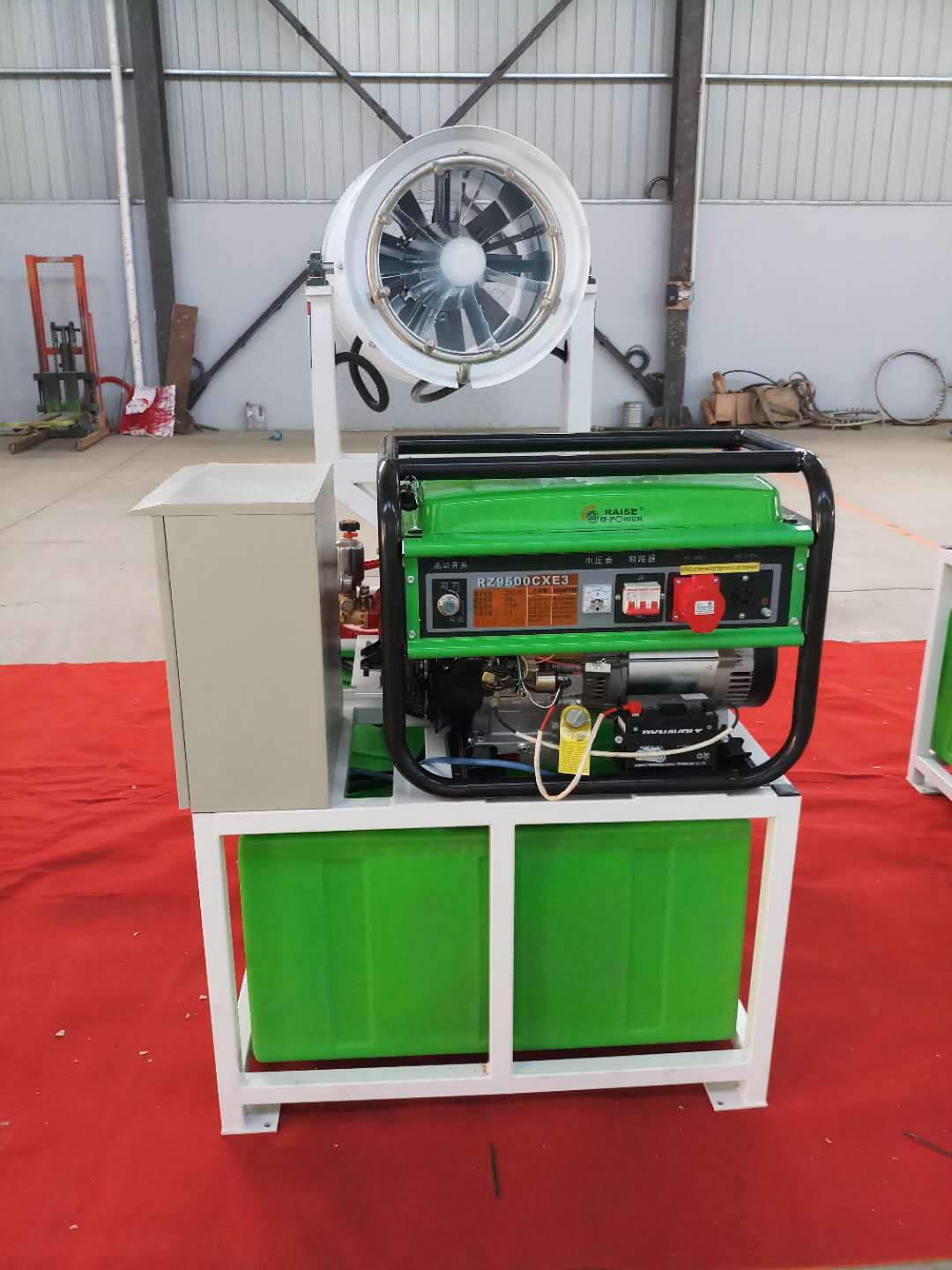 隨著城市的拆遷建筑工作的發展,城市灰塵開始肆虐,面對這種情況,霧炮機逐漸出現在人們的視野中,霧炮機是利用車載霧炮車來制造細水霧,通過水霧,吸附沉降想結合的方式來抑制空氣中的灰塵,同時,霧炮機可以任意選擇施工區域進行液體霧化降塵,分解和淡化空氣中的顆粒濃度,漂浮在空氣中的污染顆粒,粉塵等迅速迫降到地面,達到凈化空氣的效果。
