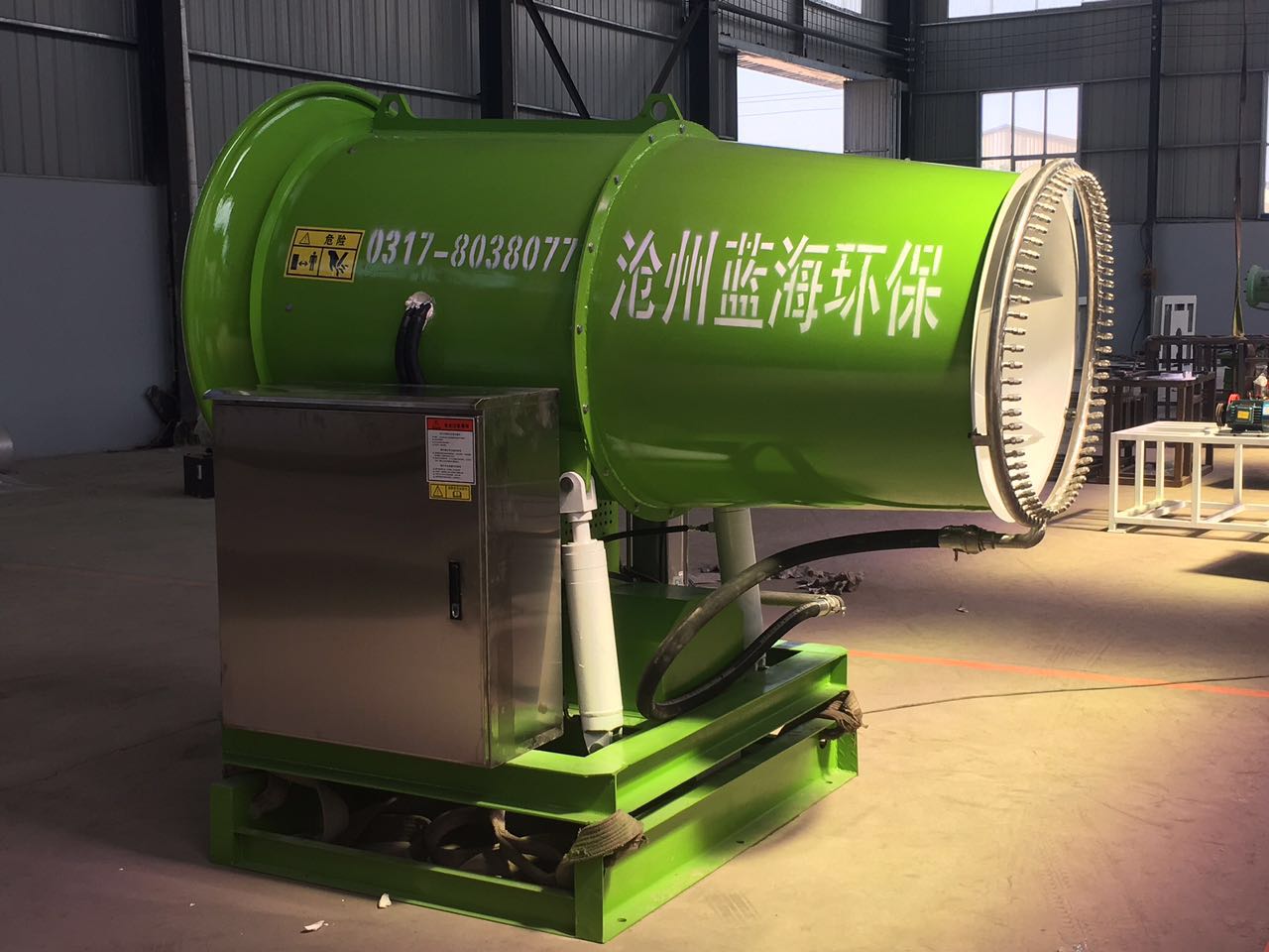 霧炮機的原理是灰塵可以通過與水結合而聚集和增加,使得細小的灰塵通過相等直徑的水滴的小胡作用,降低水面的張力,并使灰塵顆粒和水霧凝聚成一團,在重力額作用下,它落到了地面,當霧粒接近顆粒大小時,減塵效果 ,噴霧器通過高壓泵對水加壓,一定壓力的高壓水通過高壓霧化噴嘴產生直徑接近塵粒的水霧,通過大功率風扇將水霧送到除塵區域,制成水霧和霧氣,灰塵顆粒迅速附和凝結,在自身重力下沉降,達到降塵的目的,還具有加濕和冷卻功能。