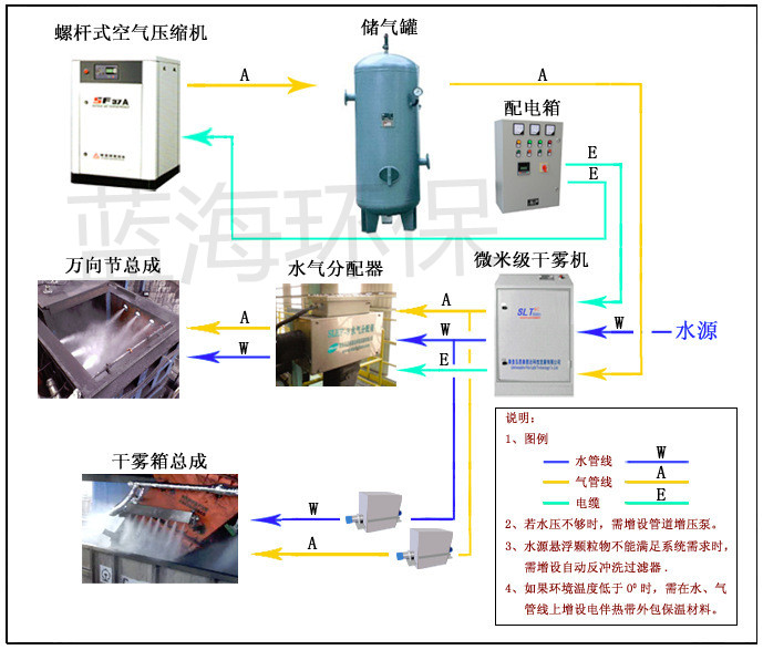 噴霧除塵是濕法除塵應用較多的除塵技術,主要運用于物料能接觸水分的起塵點、起塵位置噴霧除塵,即噴霧控制粉塵。噴霧除塵主要是利用水霧顆粒與粉塵顆粒相互結合,凝結受重力沉降,通過在起塵點噴霧,形成濃密的霧團,包裹粉塵,實現從源頭噴霧控制粉塵。其優勢不僅在于低廉的造價、控制簡單、維護方便,而且除塵效果 、低能耗、穩定性 是其它除塵方式所不能相比得, 不會造成二次污染。