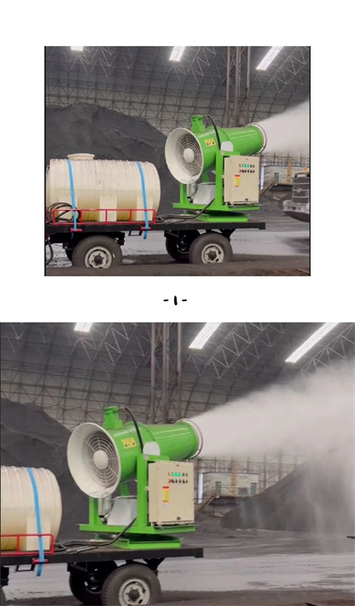 除塵噴霧機根據不同型號,從而達到不同的覆蓋面積,霧粒細小,與飄起的塵埃接觸時,形成一種潮濕霧狀體,能快速將塵埃抑制降沉。從而減少環境的污染及對人體的危害。