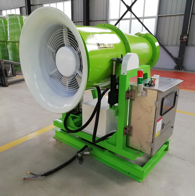 藍海遠程噴除塵噴霧機是根據風送原理,先使用進口高壓泵、微細霧化噴嘴將水霧化,再利用風機風量和風壓將霧化后的水霧送到較遠距離,使得水霧到達較遠距離同時能夠覆蓋 大面積,水霧與粉塵凝結后降落,從而達到降塵目的。一臺可噴灑100多米的多功能抑塵車投入使用。該“除塵噴霧機”又叫環保除塵風送式噴霧機,安裝在車的后半部分。